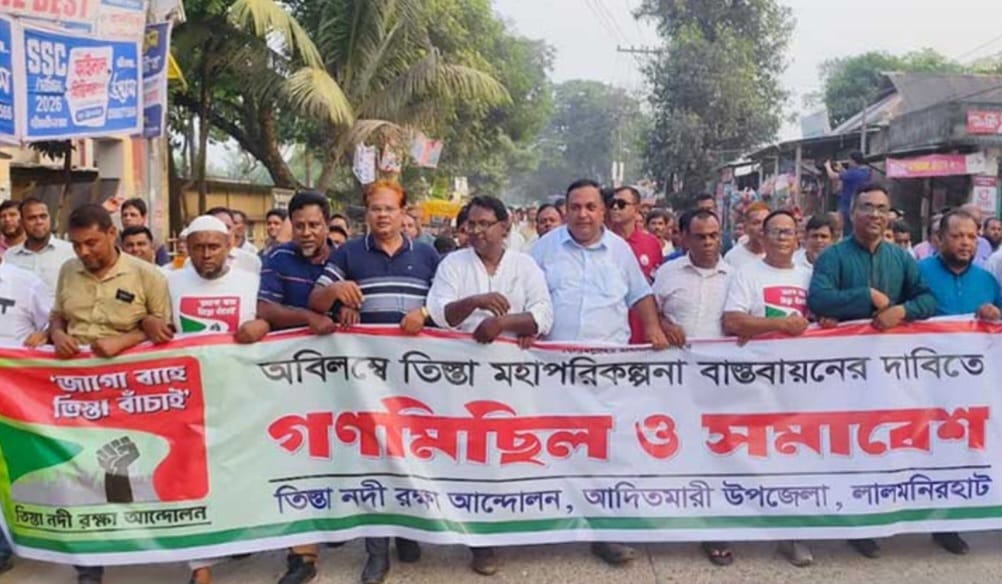‘জাগো বাহে তিস্তা বাঁচাই’–এই স্লোগানকে সামনে রেখে তিস্তা নদী রক্ষা আন্দোলন লালমনিরহাট আদিতমারী উপজেলার আয়োজনে বৃহস্পতিবার (৯ অক্টোবর) বিকেলে অবিলম্বে তিস্তা মহাপরিকল্পনা বাস্তবায়নের দাবীতে গণমিছিল ও সমাবেশ অনুষ্ঠিত হয়।