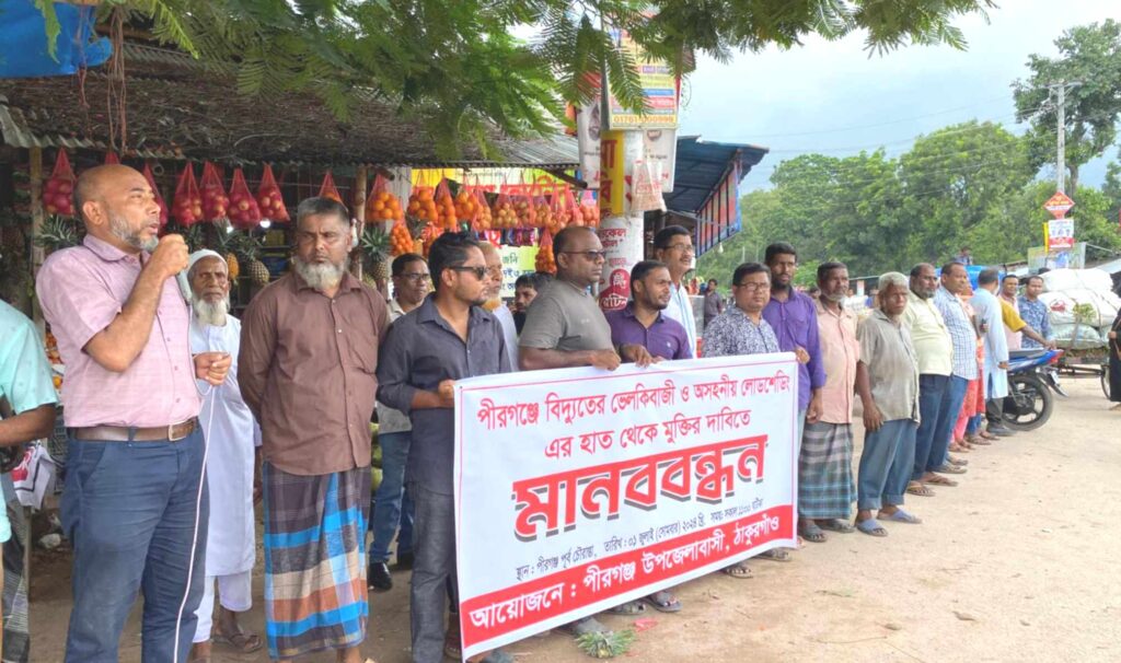 অসহনীয় লোডশেডিং থেকে মুক্তির দাবিতে ঠাকুরগাঁওয়ের পীরগঞ্জে মানববন্ধন