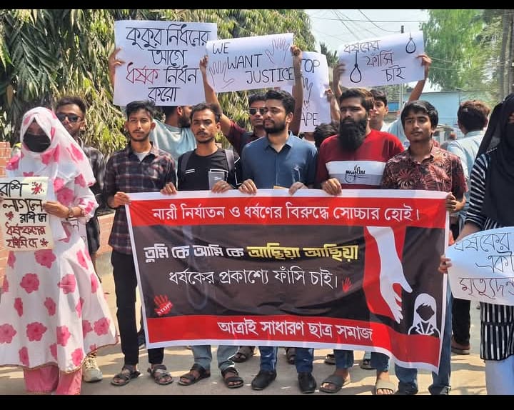 ধর্ষণের বিরুদ্ধে বিক্ষোভ মিছিল করেছে আত্রাই সাধারণ ছাত্র সমাজ। ধর্ষণের একমাত্র শাস্তি মৃত্যুদণ্ড ও নারীর প্রতি সহিংসতা রোধের দাবি জানায় শিক্ষার্থীরা।