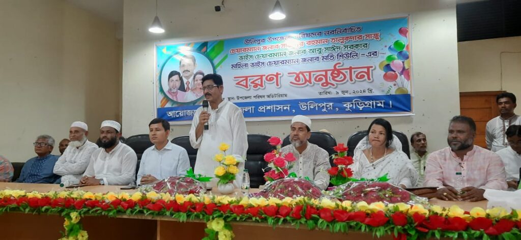 কুড়িগ্রামের উলিপুর উপজেলা পরিষদের নবনির্বাচিত চেয়ারম্যান ভাইস চেয়ারম্যান ও মহিলা ভাইস চেয়ারম্যানকে বরণ উপলক্ষে উলিপুর উপজেলা পরিষদের অডিটোরিয়ামে এক অনুষ্ঠানের আয়োজন করা হয়েছে।