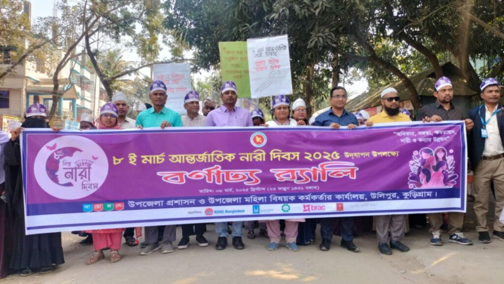 অধিকার, সমতা,ক্ষমতায়ন, নারী ও কন্যার উন্নয়ন” এই প্রতিপাদ্যকে সামনে রেখে কুড়িগ্রামের উলিপুরে বর্ণাঢ্য র‌্যালি, আলোচনা সভার মধ্যদিয়ে আন্তর্জাতিক নারী দিবস-২০২৫ উদযাপনকরা হয়েছে।