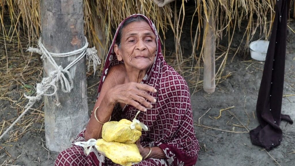 বানভাসি লাইজু বেগম (৫৫) জানান, তিনদিন থাকি শুকেন খাবার চিড়ে-মুড়ি খায়া আছি।পানির জন্যে আন্দিবের পাই ন্যে। আইজ আন্দা খিচড়ি পাইলং।