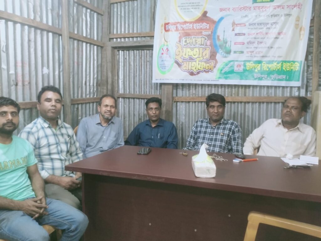 অনুষ্ঠানে সভাপতিত্ব করেন উলিপুর রিপোর্টার্স ইউনিটির আহ্বায়ক মমিনুল ইসলাম। সদস্য সচিব আব্দুল মান্নান স্কুলের প্রত সমাজসেবক আলহাজ করতোয়া ও কুড়িগ্রাম প্রতিনিধি হোসেন, উপজেলা প্রেসক্লাব উলিপুরের সদস্য রিপোর্টার্স ইউনিটির সিনিয়র যুগ্ম আহ্বায়ক আবু রায়হান আলী আইওয়ান টিভি উলিপুর প্রতিনিধ ও উলিপুর রিপোর্টার্স ইউনিটির যুগ্ম আহ্বায়ক ও দৈনিক প্রথম খবর, দৈনিক ঢাকা রিপোর্ট পত্রিকার জেলা প্রতিনিধি, মোঃ রুহুল আমিন (রুক), সদস্য শাহিনুল ইসলাম লিটন সম্পাদক অনলাইন দৈনিক উত্তরবঙ্গের সংবাদ ও জেলা প্রতিনিধি দৈনিক নতুন দিন কুড়িগ্রাম। মোঃ ফজলুল হক রাজু দৈনিক আমাদের পত্রিকা সদস্য প্রতীক কুমার উলিপুর প্রতিনিধি মাসিক যায় যায় বেলা উলিপুর।, সহ সকল সদস্যগণ মত বিষনিময় ও ইফতার মাহফিলে উপস্থিত ছিলেন ।