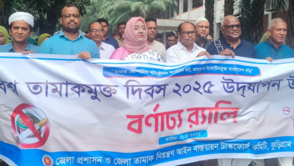 সামাজিক আন্দোলন গড়ে তোলার মাধ্যমে ২০৪০ সালের মধ্যে তামাকমুক্ত বাংলাদেশ গড়ে তোলার টার্গেট নেয়া হয়েছে। তারও আগে কুড়িগ্রামকে তামাকমুক্ত ঘোষণা করার জন্য প্রত্যেকের স্ব-স্ব অবস্থান থেকে সচেতনতামূলক কার্যক্রম অব্যাহত রাখতে হবে। আজ শনিবার (৩১ মে) সকাল ১০,টায় বিশ্ব তামাকমুক্ত দিবস উপলক্ষে আয়োজিত আলোচনা সভায় সভাপতির ভাষণে কুড়িগ্রামের জেলা প্রশাসক নুসরাত সুলতানা এ কথা বলেন।