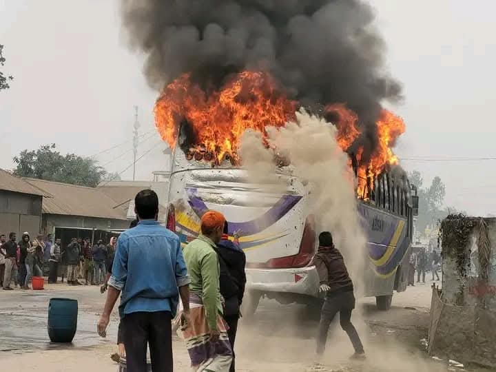 বৃহস্পতিবার (৩০ জানুয়ারি) দুপুর পৌনে ১২টার দিকে লাগা এ আগুনে বাসের প্রায় সবকটি আসন পুড়ে ছাই হয়ে গেছে।