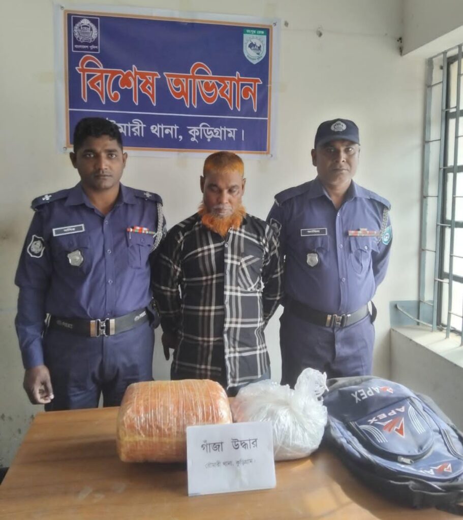 কুড়িগ্রাম জেলার রৌমারী থানা পুলিশের একটি চৌকস টিম অদ্য ৬ জানুয়ারি ২০২৫ তারিখ দুপুর আনুমানিক ১২:১০ ঘটিকায় রৌমারী থানাধীন বন্দবের বলদমারা ঘাট এলাকা থেকে ফুলবাড়ী থানাধীন নাওডাঙ্গা এলাকার মাদক কারবারি মোঃ ছালাম উদ্দিন (৬৫) কে ০৫ কেজি ৪৭০ গ্রাম গাঁজাসহ হাতেনাতে গ্রেফতার করে।