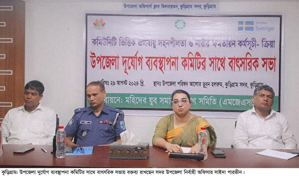 কুড়িগ্রাম প্রতিনিধি: কুড়িগ্রাম সদর উপজেলা দুর্যোগ কমিটির বাৎসরিক সভা সদর উপজেলা অফিসার্স ক্লাব মিলনায়তনে অনুষ্ঠিত হয়েছে। বৃহস্পতিবার দুপুরে সভার উদ্বোধন করেন সদর উপজেলা নির্বাহী অফিসার সাইদা পারভীন।