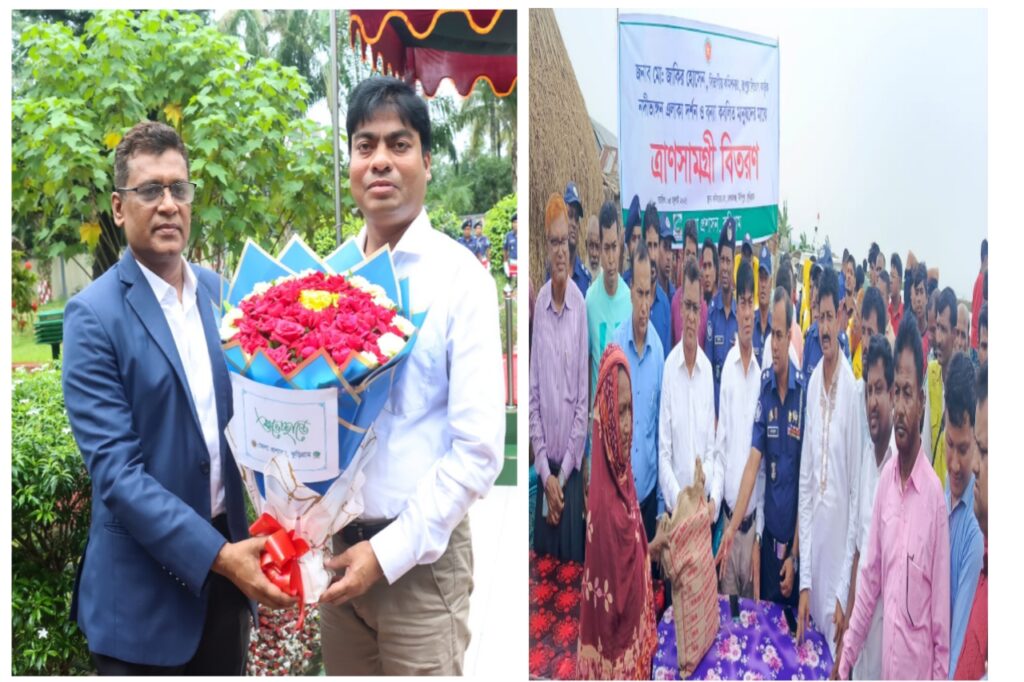 কুড়িগ্রামে বন্যা কবলিতের মাঝে ত্রান সামগ্রী বিতরণ ও নদী ভাঙ্গন এলাকা পরিদর্শনে রংপুরের বিভাগীয় কমিশনার