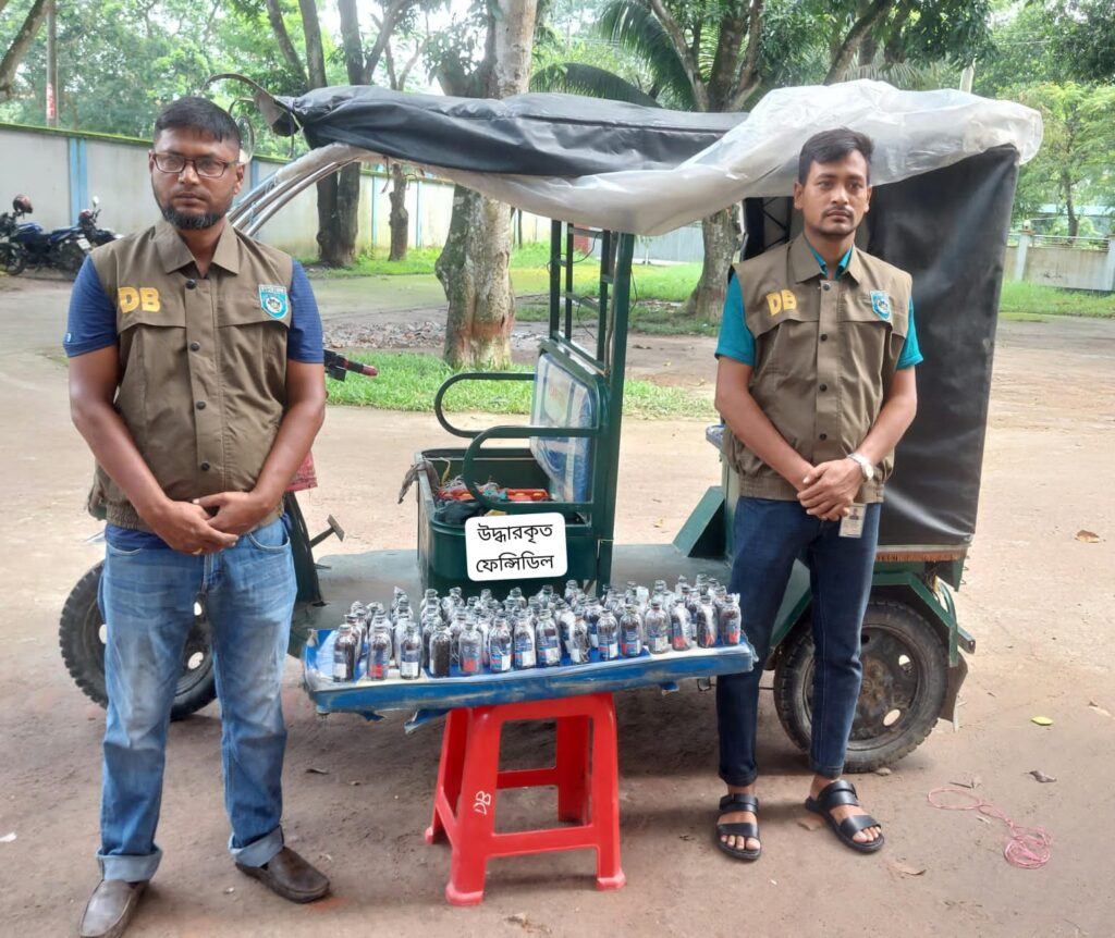 কুড়িগ্রাম জেলা গোয়েন্দা শাখা (ডিবি) পুলিশের একটি চৌকস টিম অদ্য ৯ জুলাই ২০২৪ রাত্রি আনুমানিক ০০:৩০ ঘটিকায় গোপন সংবাদের ভিত্তিতে কুড়িগ্রাম পৌরসভাধীন মধুর মোড় সংলগ্ন পাঁকা রাস্তার উপর রাস্তা থেকে ১টি ব্যাটারি চালিত অটোভ্যানে বিশেষ কায়দায় ফিটিংকৃত অবস্থায় ৭০ বোতল ফেন্সিডিল উদ্ধার করে এবং অটোভ্যানটি জব্দ করে।