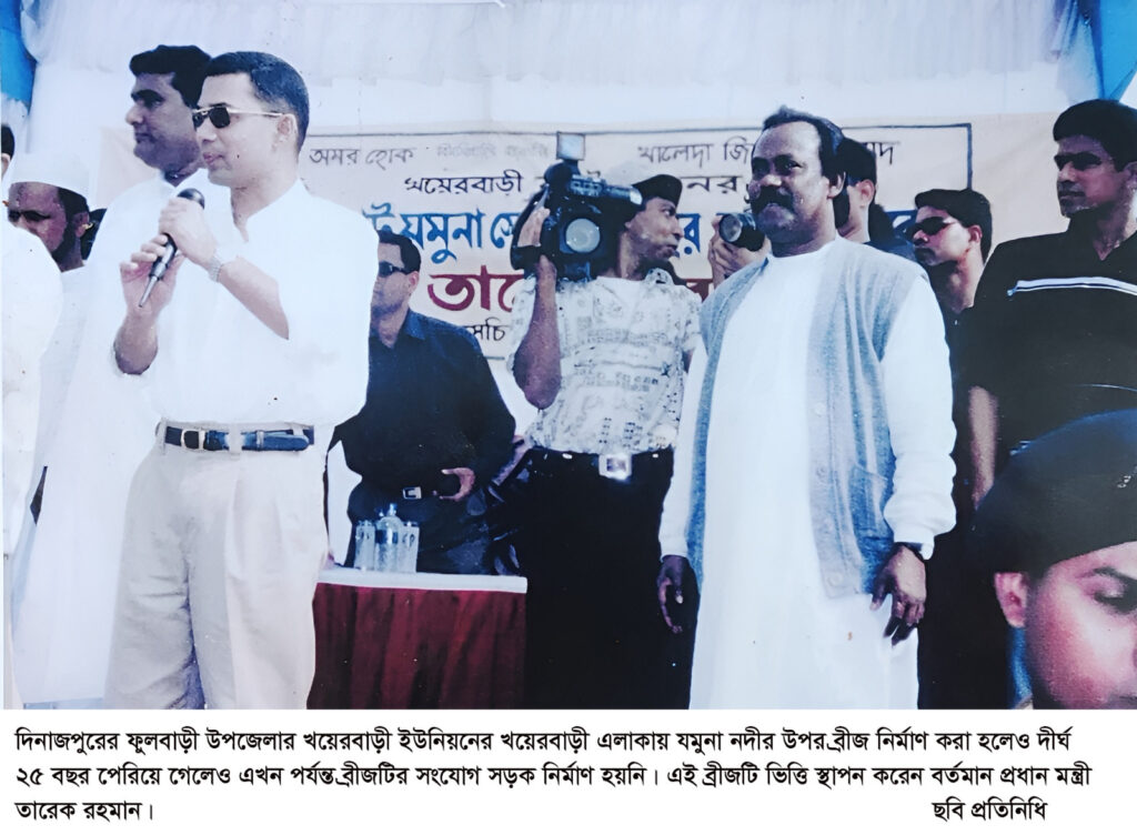 তৎকালীন সময় দিনাজপুর জেলা যুব দলের সহ-সভাপতি ও ০৫ নং খয়েরবাড়ী ইউনিয়নের বিএনপি’র সভাপতি মোঃ আনোয়ার হোসেন চৌধুরী ও ফুলবাড়ী থানা বিএনপি সাধারণ সম্পাদক ও ০৫ নং খয়েরবাড়ী ইউপির চেয়ারম্যান মোঃ মোজাফ্ফ হোসেন চৌধুরী’র অক্লান্ত চেষ্টায় বর্তমান প্রধান মন্ত্রী তারেক রহমান এখানে এনে এই ব্রীজটির ভিত্তি স্থাপন করানো হয়। যথা নিয়মে কাজ শুরু হয় ও কাজ সম্পন্ন হয়।