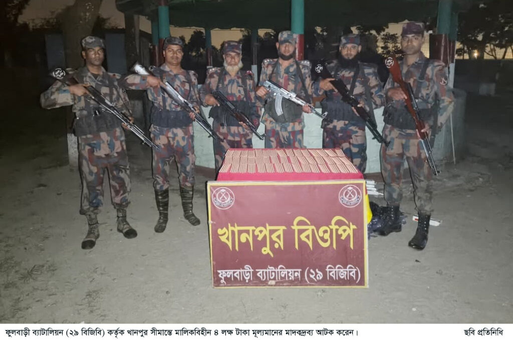 ফুলবাড়ী ব্যাটালিয়ন (২৯ বিজিবি) খানপুর সীমান্ত এলাকায় অভিযান চালিয়ে প্রায় ৪ লাখ টাকা মূল্যের বিপুল পরিমাণ মাদকদ্রব্য উদ্ধার করেছে।