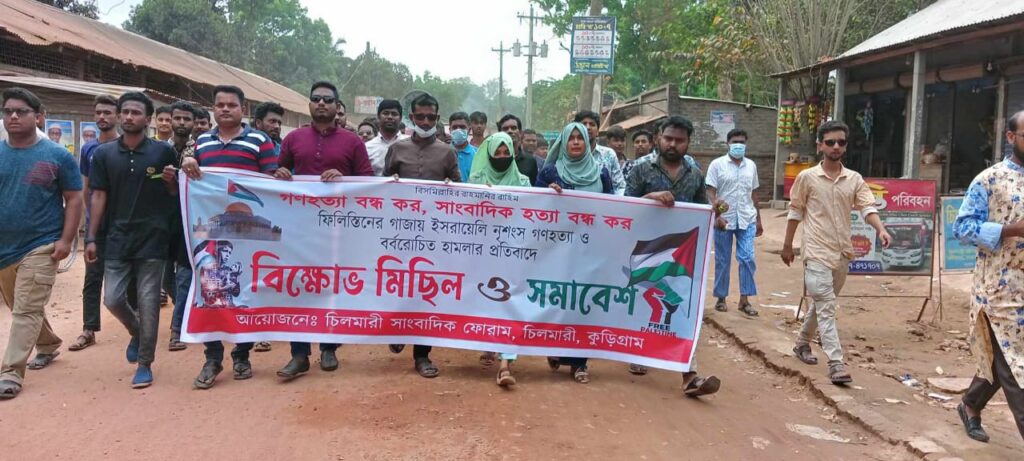 গাজায় গণহত্যা প্রতিবাদে চিলমারী সাংবাদিক ফোরামের বিক্ষোভ মিছিল