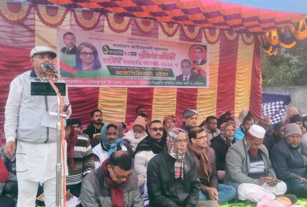 চাঁপাইনবাবগঞ্জের গোমস্তাপুরে বিএনপির বঞ্চিত নেতাকর্মীরা ছাত্রদলের ৪৬ তম প্রতিষ্ঠাবার্ষিকী পালন করেছে । এছাড়া উপজেলা বিএনপির কমিটি নিয়ে মতবিনিময় সভা করা হয়। উপজেলা ও রহনপুর পৌর বিএনপি কমিটির বঞ্চিত নেতাকর্মী আয়োজিত সভায় সভাপতিত্ব করেন রাধানগর ইউনিয়ের সাবেক বিএনপির নেতা মোজাম্মিল হক। সভায় প্রধান অতিথির বক্তব্য দেন সাবেক উপজেলা বিএনপির সাধারণ সম্পাদক ও সাবেক রহনপুর পৌরসভার মেয়র তারিক আহমদ। অন্য নেতাকর্মীদের মধ্যে বক্তব্য দেন রহনপুর ইউনিয়ন বিএনপিন সাবেক নেতা শফিকুল ইসলাম, রাধানগর ইউনিয়ন বিএনপি নেতা জাকির খান, গোমস্তাপুর ইউনিয়ন বিএনপি নেতা কামরুজ্জামান বাবু, সাবেক রহনপুর পৌরসভার কাউন্সিলর জুয়েল আলী, সাবেক ছাত্রদল নেতা জাহিদ হাসান মুক্তা, যুবনেতা আবদুল্লাহ, সাফিরুল ইসলামসহ অনেকে । এ সময় বঞ্চিত নেতাকর্মীদের গণসাক্ষর করা হয়।