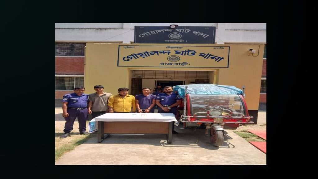 গ্রেপ্তারকৃতরা হলো, গোয়ালন্দ উপজেলার দৌলতদিয়া ইউনিয়নের আইনুদ্দিন বেপারী পাড়ার লুৎফর বেপারীর ছেলে সাহিদুল ইসলাম (২৯), সামচু মাষ্টার পাড়ার মৃত সামচু মন্ডলের ছেলে সুমন মন্ডল (২৯), ঝিনাইদহ সদর থানার নারায়নপুর গ্রামের জালাল বিশ্বাসের ছেলে নাজমুল হোসেন (৩০)।