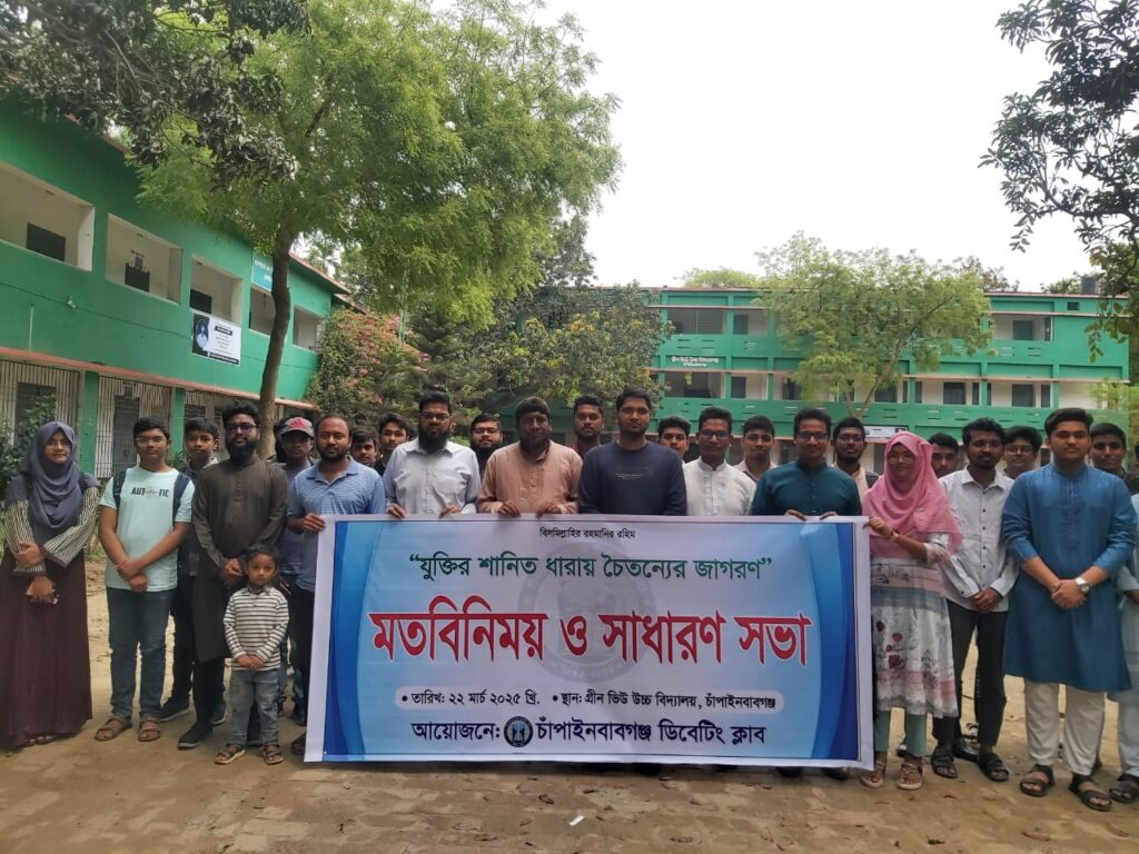 মাহিদুল ইসলাম ফরহাদ, চাঁপাইনবাবগঞ্জ জেলা প্রতিনিধিঃ“যুক্তির শানিত ধারায় চৈতন্যের জাগরণ” এই স্লোগানকে সামনে রেখে চাঁপাইনবাবগঞ্জ ডিবেটিং ক্লাবের আয়োজনে মতবিনিময় ও সাধারণ সভা অনুষ্ঠিত হয়েছে।