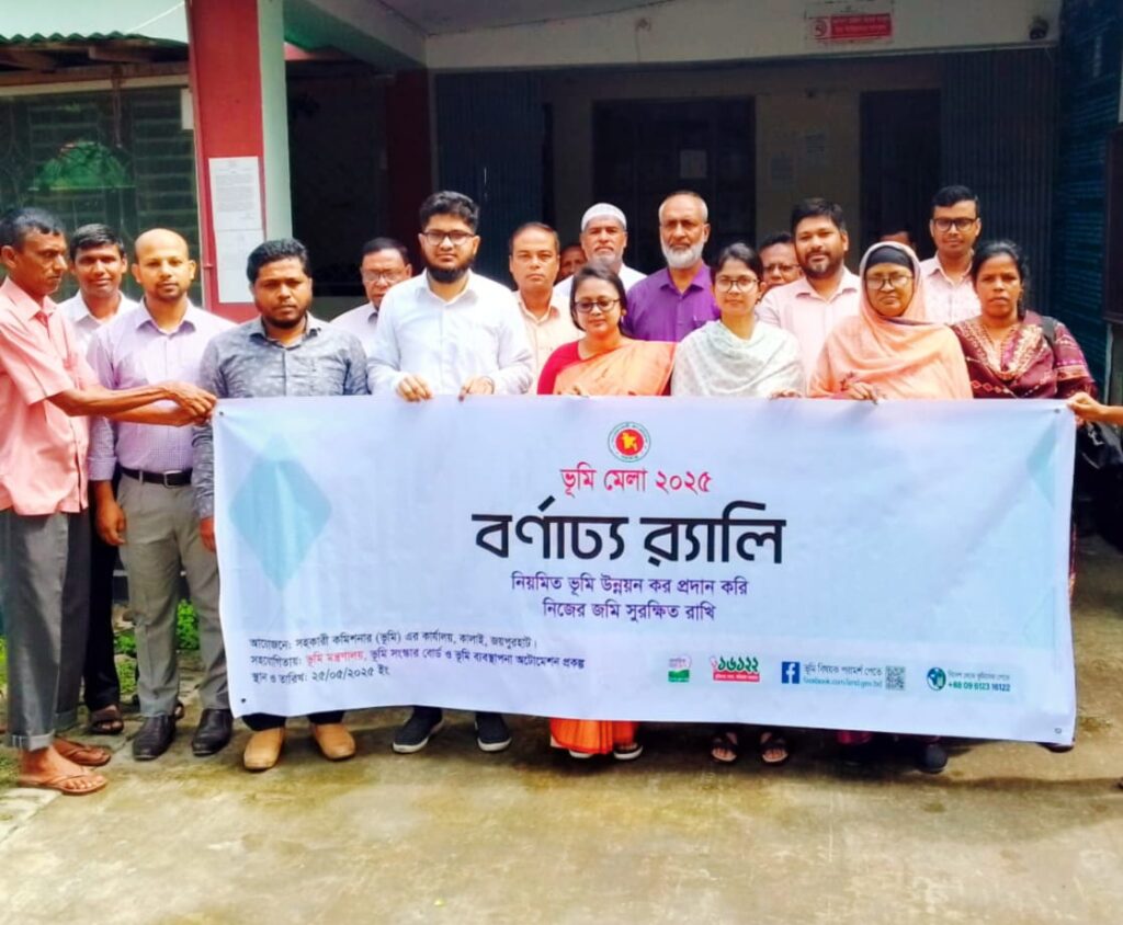 জয়পুরহাটের কালাই উপজেলায় ভূমি মন্ত্রণালয়, ভূমি সংস্কার বোর্ড এবং ভূমি ব্যবস্থাপনা অটোমেশন প্রকল্পের সহযোগিতায় ভূমি মেলা অনুষ্ঠিত হয়েছে ।