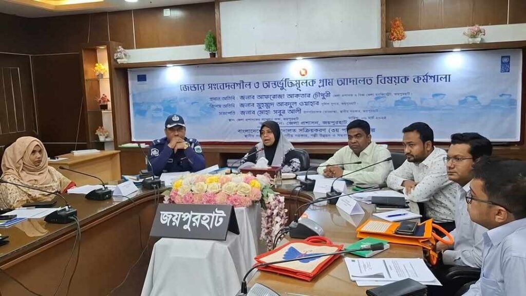 জয়পুরহাটে গ্রাম আদালতের কার্যক্রমকে আরও গতিশীল ও অন্তর্ভুক্তিমূলক করতে ‘জেন্ডার সংবেদনশীল ও অন্তর্ভুক্তিমূলক গ্রাম আদালত’ শীর্ষক কর্মশালা অনুষ্ঠিত হয়েছে। সোমবার (৬ মার্চ) জেলা প্রশাসকের সম্মেলন কক্ষে এই কর্মশালার আয়োজন করা হয়।