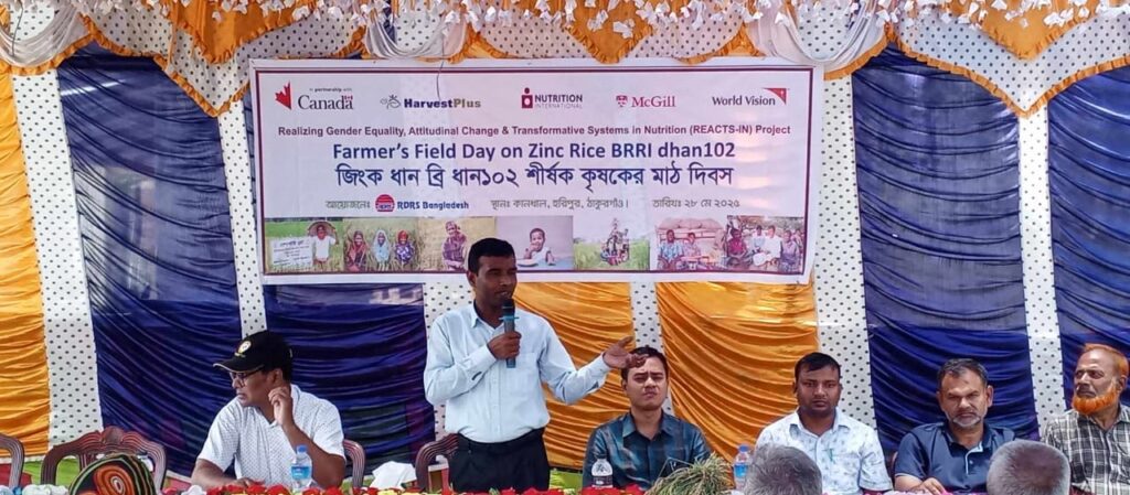 রিএক্টস-ইন প্রকল্পটি কানাডা সরকারের অর্থায়নে, ওয়ার্ল্ড ভিশন, হারভেস্টপ্লাস, নিউট্রিশন ইন্টারন্যাশনাল এবং ম্যাক গ্রিল বিশ্ববিদ্যালয় কনসোর্টিয়াম এর মাধ্যমে অন্যান্য তিনটি দেশের মতো বাংলাদেশের ঠাকুরগাঁও জেলার হরিপুর উপজেলায় বাস্তবায়িত হচ্ছে। এই প্রকল্পের হারভেস্টপ্লাসের কার্যক্রম গুলি আরডিআরএস বাংলাদেশ ও ইএসডিও এর মাধ্যমে বাস্তবায়িত হচ্ছে বলে জানান প্রকল্প বাস্তবায়নকারী প্রতিষ্ঠানের কর্মকর্তারা।