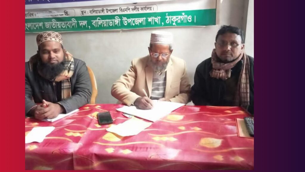 বালিয়াডাঙ্গীতে জাতীয়তাবাদীদল ওলামাদলের কমিটি গঠিত। বাংলাদেশ জাতীয়তাবাদীদল বিএনপির সহযোগী সংগঠন জাতীয়তাবাদী ওলামাদলের ঠাকুরগাঁয়ের বালিয়াডাঙ্গী উপজেলা শাখার উদ্যোগে আজ বৃহস্পতিবার বিকালে দলীয় কার্যালয়ে উপজেলা জাতীয়তাবাদী ওলামাদলের কমিটি গঠন উপলক্ষে এক আলোচনা সভা অনুষ্ঠিত হয়। আলোচনা সভা শেষে উপস্থিত সকলের সম্মতিক্রমে উপজেলা জাতীয়তাবাদী ওলামাদলের কমিটির নাম ঘোষণা করা হয়। সভাপতি পদে হাফেজ মাওলানা ইসমাইল হোসেন, সাধারণ সম্পাদক পদে হাফেজ মাওলানা মোঃ হাসান আলী ও সাংগঠনিক সম্পাদক পদে মাওলানা মোঃ জহিরুল ইসলামের নাম ঘোষনা করা হয়েছে।