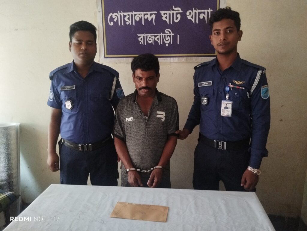 শুক্রবার (১৪ মার্চ) ভোর সাড়ে ৬টার দিকে গোয়ালন্দ ঘাট থানার অফিসার ইনচার্জ মোহাম্মদ রাকিবুল ইসলামের দিক নির্দেশনায় এসআই মোঃ ফরিদ মিয়া সঙ্গীয় ফোর্স সহ অভিযান পরিচালনা করে। অভিযানে গোয়ালন্দ ঘাট থানার উত্তর দৌলতদিয়া পতিতাপল্লীর ভিতরে লতিফের বাড়ির সামনে গলির রাস্তার উপর থেকে মোঃ আজগর শেখকে ৭৫ পুরিয়া হেরোইনসহ গ্রেপ্তার করে।