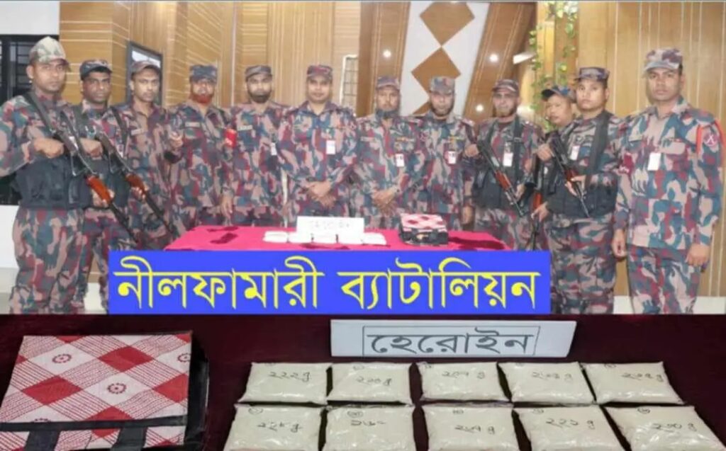 রবিবার ১৬ই ফেব্রুয়ারি রাত ০৯ টায় নীলফামারী-সৈয়দপুর সড়কের টেক্সটাইল এলাকায় এ অভিযান পরিচালনা করা হয়। নীলফামারী ব্যাটালিয়নের সহকারী পরিচালক জসিম উদ্দিনের নেতৃত্বে অভিযান চালিয়ে ডোমার থেকে সৈয়দপুরগামী সারোয়ার এন্টারপ্রাইজ (বগুড়া জ-১১-০০৬১) নামের একটি বাস থেকে হেরোইন উদ্ধার করা হয়।