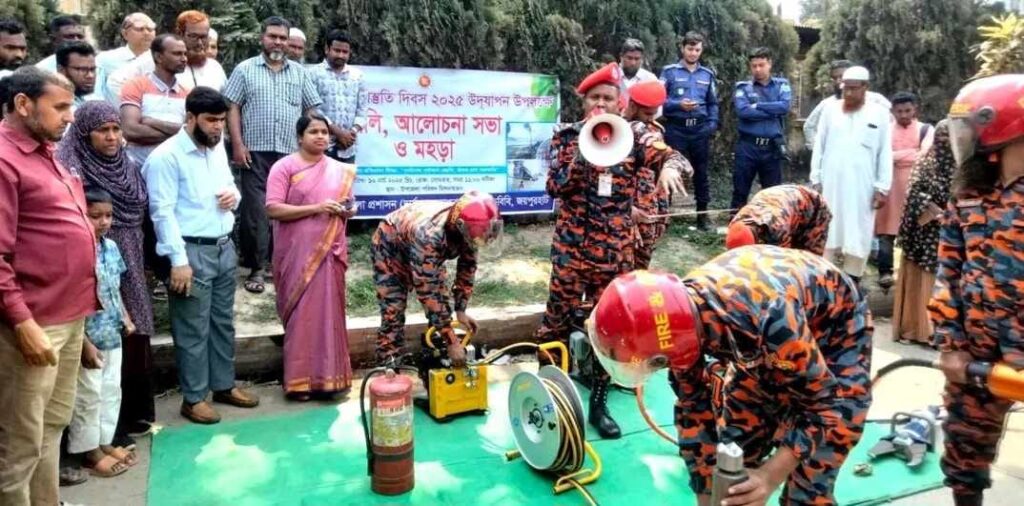 সভার আগে পাঁচমাথা চত্বরে ফায়ার সার্ভিস স্টেশনের একটি দল অগ্নিকাণ্ড, দুর্যোগপূর্ণ পরিস্থিতি ও সড়ক দুর্ঘটনায় আহতদের উদ্ধার ও তাৎক্ষণিক হাসপাতালে নেওয়ার করণীয় নিয়ে একটি মহড়া প্রদর্শন করে।