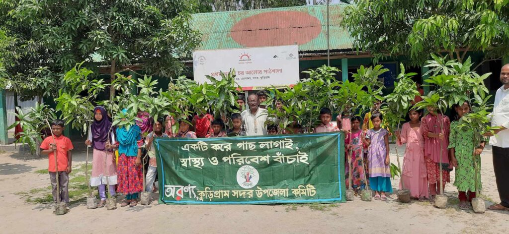 প্রথম আলো চরে অরণ্যের উদ্যোগে বৃক্ষরোপণ কর্মসূচি অনুষ্ঠিত