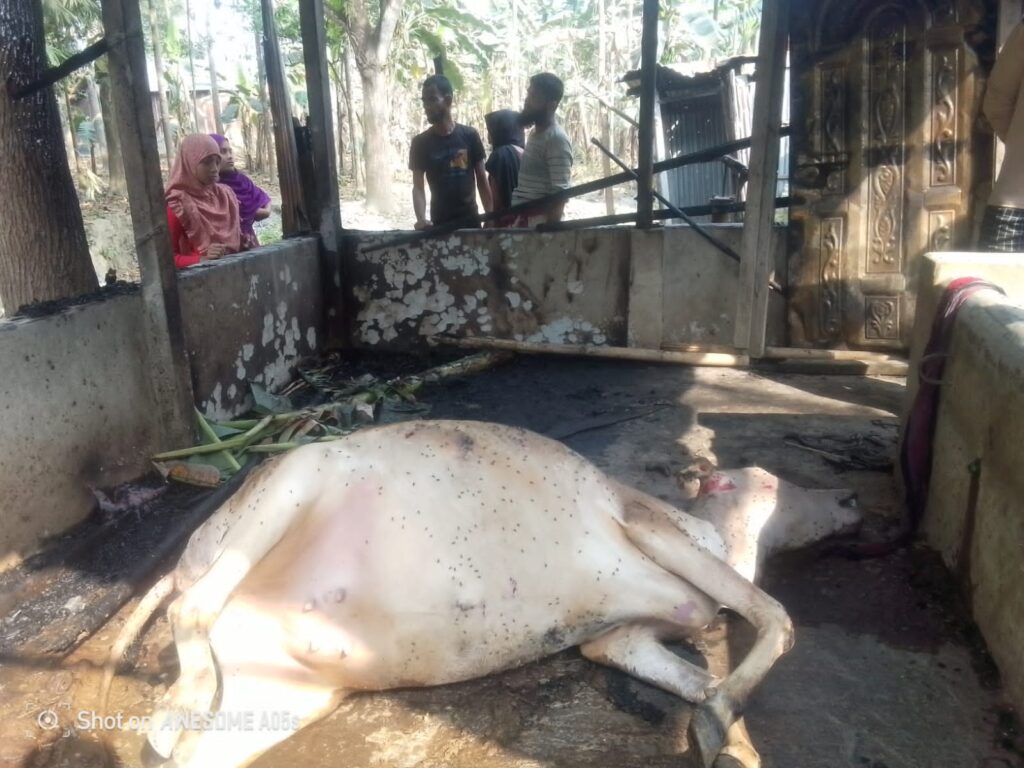 স্থানীয়রা জানান, বুধবার দিবাগত রাত সাড়ে ৫টার দিকে রমজানের সেহরি খেয়ে অনেকেই ফজরের নামাজের জন্য মসজিদের দিকে যাচ্ছিলেন। এমন সময় কৃষক ছানোয়ার মন্ডল আগুন আগুন বলে চিৎকার করলে প্রতিবেশীসহ এলাকাবাসী এগিয়ে এসে আগুন নিয়ন্ত্রণে আনে। ততক্ষণে ছানোয়ার মন্ডলের ৮ মাসের গর্ভবতী একটি গরু পুড়ে মারা যায়।