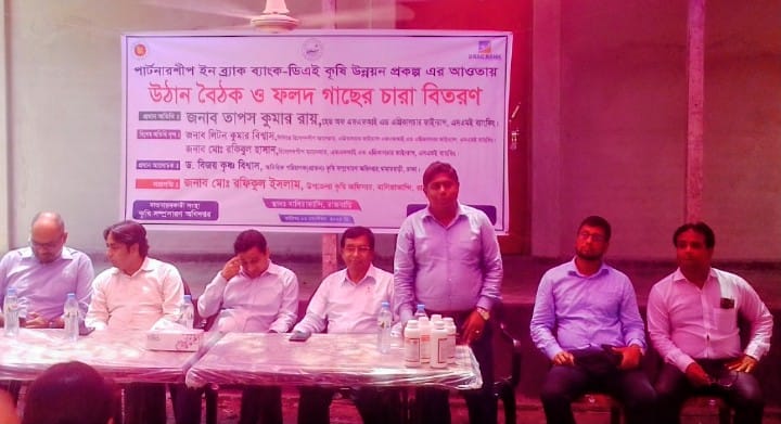 রাজবাড়ীর বালিয়াকান্দিতে পার্টনারশীপ ইন ব্র্যাক ব্যাংক ডিএই কৃষি উন্নয়ন প্রকল্কের আওতায় উঠান বৈঠক ও ফলদ গাছের চারা বিতরণ করা হয়েছে।