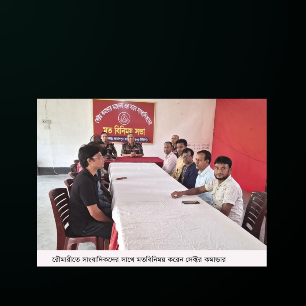 কুড়িগ্রামের রৌমারী উপজেলার দাঁতভাঙ্গা বিওপি ক্যাম্পে জামালপুর ৩৫ বিজিবি ব্যাটালিয়ন এর আয়োজনে উপজেলার বিভিন্ন প্রিন্ট ও ইলেকট্রনিক মিডিয়ার কর্মরত সাংবাদিকদের সাথে পিবিজিএমএস, পিএসসি, সেক্টর কমান্ডার ময়মনসিংহ এর কর্নেল সরকার মোহাম্মদ মোস্তাফিজুর রহমান ও জামালপুর ৩৫ ব্যাটালিয়নের পিএসসি অধিনায়ক লেঃ কর্নেল হাসানুর রহমান মত বিনিময় সভা করেন। শুক্রবার বিকালের দিকে উপজেলার দাঁতভাঙ্গা বিজিবি ক্যাম্পে এই মত বিনিময় সভা অনুষ্ঠিত হয়।