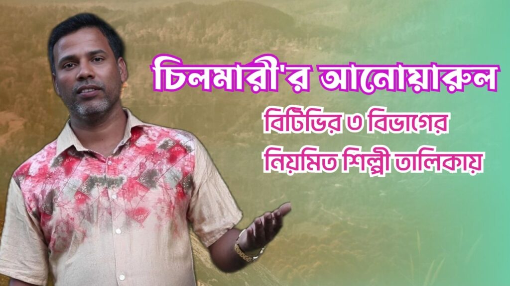 মিজানুর রহমান মিজান, স্টাফ রিপোর্টার: বাংলাদেশ টেলিভিশনে (বিটিভি) নিয়মিত কণ্ঠশিল্পী হিসেবে আলাদা আলাদা বিভাগে চূড়ান্তভাবে নির্বাচিত হয়েছেন কুড়িগ্রামের চিলমারী উপজেলার আনোয়ারুল ইসলাম।