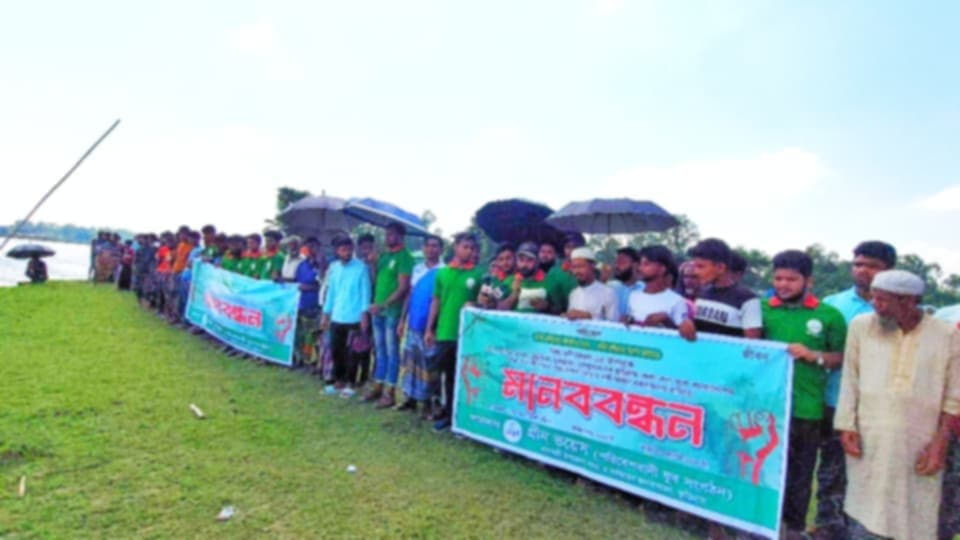 বিশ্ব নদী দিবসে কুড়িগ্রামে নদী ভাঙ্গন রোধে মানববন্ধন অনুষ্টিত