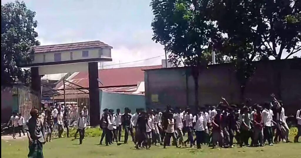 দিনাজপুর বীরগঞ্জে গত ২০ আগষ্ট/২৪ সকাল ১১-৩০ মিঃ সময় একদল ছাত্র জনতা বিক্ষোভ সহকারে কল্যানী উচ্চ বিদ্যালয়ে প্রবেশ করে। বীরগঞ্জ উপজেলায় কল্যানী উচ্চ বিদ্যালয়ের প্রধান শিক্ষককে অপসারণের দাবিতে বিক্ষোভ প্রদর্শন করতে থাকে। প্রধান শিক্ষকের বিরুদ্ধে অতিরিক্ত ফি আদায়, সাইকেল গ্যারেজ, ওয়াশ রুম নির্মানের দাবীতে বিভিন্ন স্লোগান দিতে থাকে।