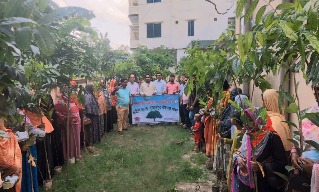 মোজাম্মেল হক বীরগঞ্জ (দিনাজপুর) প্রতিনিধিঃ “গাছে গাছে ভরবো দেশ, আসবে দেশে সবুজ ছায়ার পরিবেশ” এই প্রতিপাদ্যকে সামনে রেখে দিনাজপুরের বীরগঞ্জে গ্রামীণ ব্যাংক সুজালপুর বীরগঞ্জ শাখার উদ্যোগে নিজ কার্যালয়ে আলোচনা সভা ও বৃক্ষরোপণ কর্মসূচি অনুষ্ঠিত হয়েছে। ৪জুলাই বৃহস্পতিবার বিকাল ৪টায় গ্রামীণ ব্যাংক সুজালপুর বীরগঞ্জ শাখার ব্যবস্থাপক জাহাঙ্গীর আলম এর সভাপতিত্বে বৃক্ষরোপণ কর্মসূচিতে প্রধান অতিথি হিসেবে বক্তব্য রাখেন বীরগঞ্জ উপজেলার চেয়ারম্যান আবু হুসাইন বিপু।