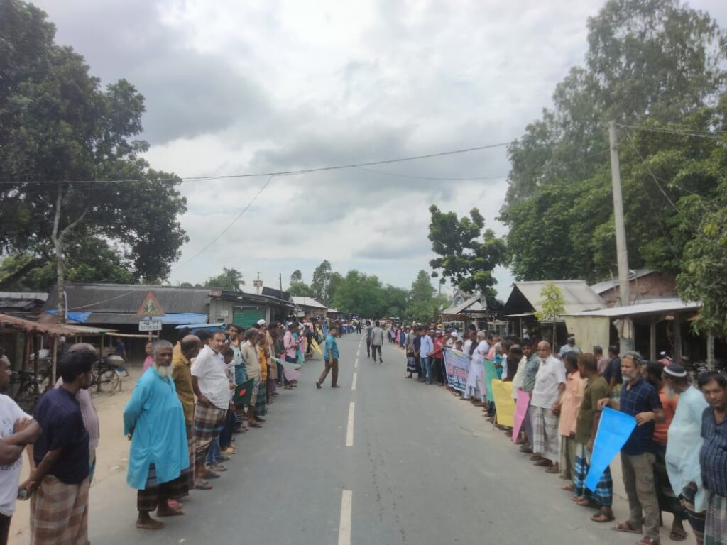 দিনাজপুরের বীরগঞ্জ উপজেলায় চৌধুরীহাট উচ্চ বিদ্যালয়ের সামনে, বৈষম্য বিরোধী ছাত্র সমাজ ও চৌধুরীহাট এলাকার সর্বস্তরের জনগনের আয়োজনে, বীরগঞ্জ- খানসামা মহাসড়কে চৌধুরীহাট উচ্চ বিদ্যালয়ে, স্বেচ্ছাচারিতা একনায়কতন্ত্র, নিয়োগ বানিজ্য ও দূর্নীতির অভিযোগে প্রধান শিক্ষক আব্দুর রহমান খানের পদত্যাগ ও চৌধুরীহাট উচ্চ বিদ্যালয়ের সাবেক সভাপতি জিয়াউর রহমান জিয়ার, নিয়োগ বানিজ্য ৮৬ লাখ টাকা আত্নসাত ও দূর্নীতির বিচারের দাবীতে মানব বন্ধন ও প্রতিবাদ সভায় ২ ঘণ্টা ব্যাপী সড়ক অবরোধ করে রাখে বৈষম্য বিরোধী ছাত্র সমাজ ও এলাকার জনগণ। বৃহস্পতিবার সকাল ১১ টায় ১০নং মোহনপুর ইউনিয়নের ইউপি সদস্য ফেরদৌস আলীর সভাপতিত্বে মানববন্দন ও প্রতিবাদ সভায় বক্তব্য রাখেন ১০নং মোহনপুর ইউনিয়নের চেয়ারম্যান শাহিনুর রহমান চৌধুরী শাহিন, ৯নং ওয়ার্ডের সাবেক ইউপি সদস্য আব্দুর সাত্তার, বৈষম্যবিরোধী ছাত্র সমাজের সদস্য পিন্টু খান, পাকেরহাট টেকনিক্যাল কলেজের প্রভাষক আব্দুর রহমান সহ আরো অনেকে।