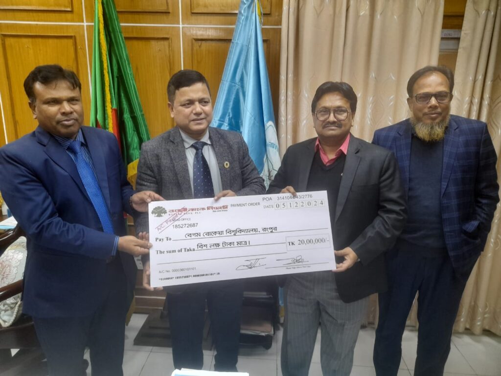 রংপুরের বেগম রোকেয়া বিশ্ববিদ্যালয়ের (বেরোবি) শিক্ষার্থীদের ক্যাম্পাসে যাতায়াতের জন্য বাস কিনতে ২০ লাখ টাকা অনুদান প্রদান করেছে রুপালী ব্যাংক পিএলসি।