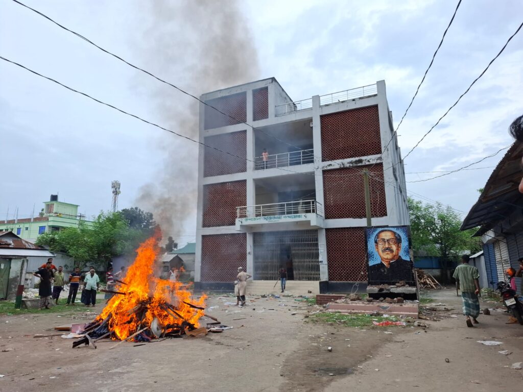 সোমবার ১১ আগস্ট সরেজমিনে গিয়ে জানা গেছে, কুড়িগ্রামের রৌমারী উপজেলা মুক্তিযোদ্ধা কমপ্লেক্স ভবন সাম্প্রতিক বৈষম্যবিরোধী ছাত্র আন্দোলনের তোপের মুখে আ,লীগ সরকারের গত ৫ আগস্ট পদত্যাগ করার পর কয়েক মিনিটের মধ্যে দুর্বৃত্তরা উপজেলা মুক্তিযোদ্ধার কমপ্লেক্স ভবনে ভাঙচুর, লুটপাট, অগ্নিসংযোগ চালায়। এই সুযোগে দুর্বৃত্তরা প্রবেশ করে ভেঙে তছনছ করে লুটপাট করে নিয়ে যায় ভবনে সংরক্ষিত থাকা নানা ধরনের জিনিস পত্র। এরপর কমপ্লেক্স চত্ত্বরে মুক্তিযুদ্ধের গুরুত্বপূর্ন জিনিস, চেয়ার, টেবিল, টিভি,বঙ্গবন্ধুর বই,ছবিসহ নানা জিনিস পত্রে ধরিয়ে দেওয়া হয় আগুন। তার পর কমপ্লেক্স ভবনে থাকা বঙ্গবন্ধুর মুর‌্যাল ভেঙে ফেলা ও ইট পাটকেল নিক্ষেপ করে ভেঙে দেওয়া হয় ভবনের গ্লাস। এছারাও উপজেলার বিভিন্ন জায়গায় সাবেক এমপি,মন্ত্রী,দলীয় অফিস,দোকান পাট লুটপাট,সাধারন মানুষের বাড়িতে ভাংচুর, চুরিসহ সহিংসতা, অরাজকতার ঘটনাও ঘটে।