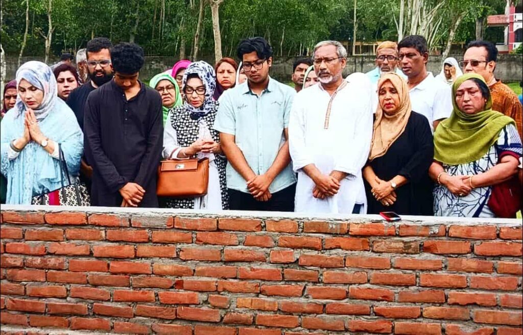 ঢাকা দিয়াবাড়ির মাইলস্টোন স্কুল অ্যান্ড কলেজে বিমান বিধ্বস্তের দূর্ঘটনায় নিহত শিক্ষিকা মাহেরীন চৌধুরীর সমাধীতে শেষ শ্রদ্ধা নিবেদন করেছে জাতীয়তাবাদী মহিলা দল।
