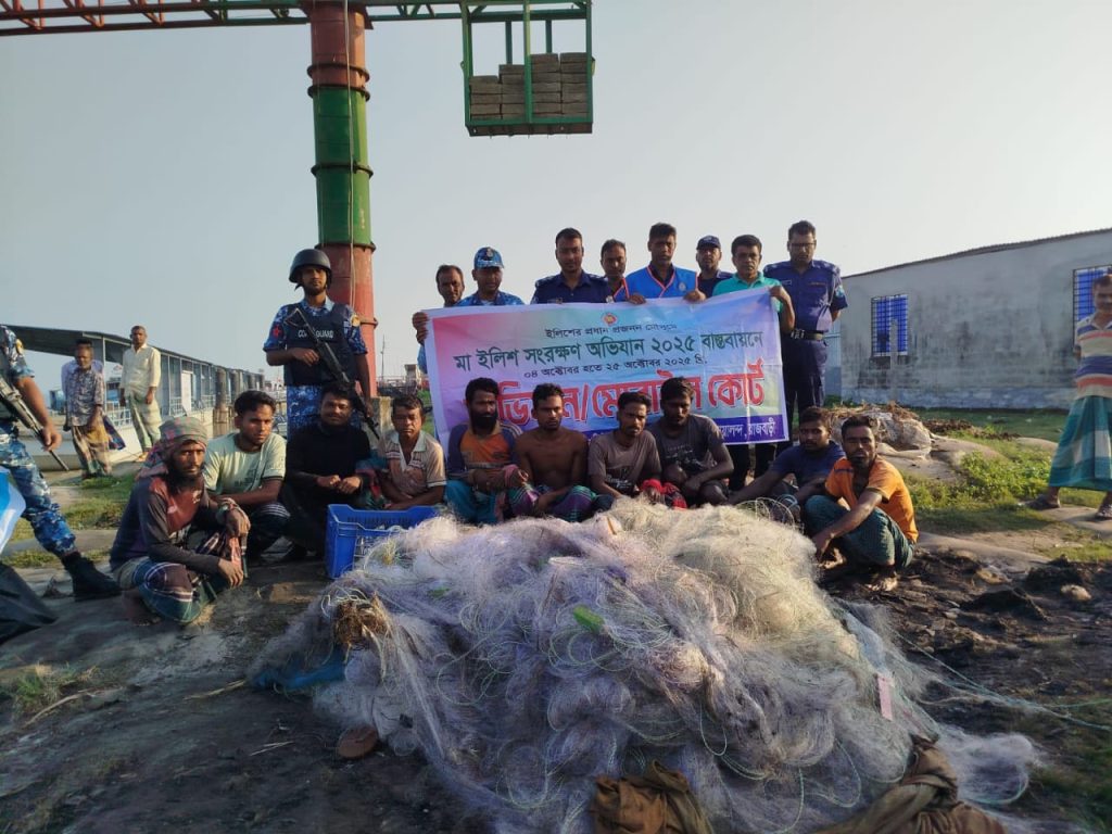 তিনি বলেন, মা ইলিশ সংরক্ষণ অভিযানে ০৪ অক্টোবর হতে ১৪ অক্টোবর পর্যন্ত ২৭টি মোবাইল কোর্টে ৯০টি অভিযানে ৭৪জন জেলেকে বিভিন্ন মেয়াদে কারাদণ্ড, ১ কোটি ৪৮ লক্ষ টাকা মূল্যের ৭ লক্ষ ৯৩ হাজার মিটার কারেন্ট জাল জব্দ করে আগুনে পুড়িয়ে বিনষ্ট করা হয়েছে। জব্দকৃত ইলিশ ৩০৫ কেজি এতিমখানায় এবং দুঃস্থদের মাঝে বিতরণ করা হয়, জরিমানা আদায় করা হয়েছে ৬৮ হাজার ২০০ টাকা, নিলাম থেকে আয় ৯৭ হাজার টাকা। এ অভিযান আগামী ২৫ অক্টোবর পর্যন্ত থাকবে।