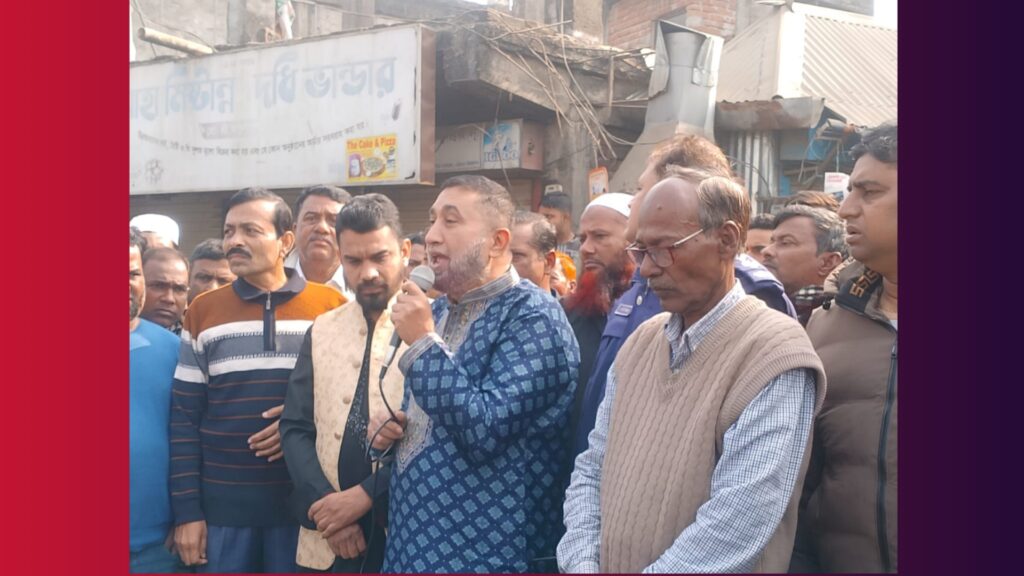 প্রতিবাদে সমাবেশে বাজার ব্যবসায়ী সমিতির সভাপতি মোঃ মজিবুর রহমানের সভাপতিত্বে বক্তব্য রাখেন, জাহানারা বেগম ডিগ্রী কলেজের প্রভাষক আবুল কালাম আজাদ, ইলেকট্রিক এন্ড ইলেকট্রনিক্স ব্যবসায়ী খন্দকার আল মামুন, মাজবাড়ি ইউনিয়ন ছাত্রদলের সাবেক নেতা মোঃ মোস্তাফিজুর রহমান রাজিব, ফার্মাসিস্ট মোঃ ওয়াজেদ আলী, ইলেকট্রনিক টেকনিশিয়ান ব্যবসায়ী আব্দুল করিম, কাপড় ব্যবসায়ী মিজানুর রহমান, বিএনপি নেতা মোঃ নজরুল ইসলাম, ব্যবসায়ী আজিজুল ইসলাম, ব্যবসায়ী জয়নাল আবেদীন, মোঃ রফিকুল ইসলাম, মোঃ শাহিনুল ইসলাম প্রমুখ।