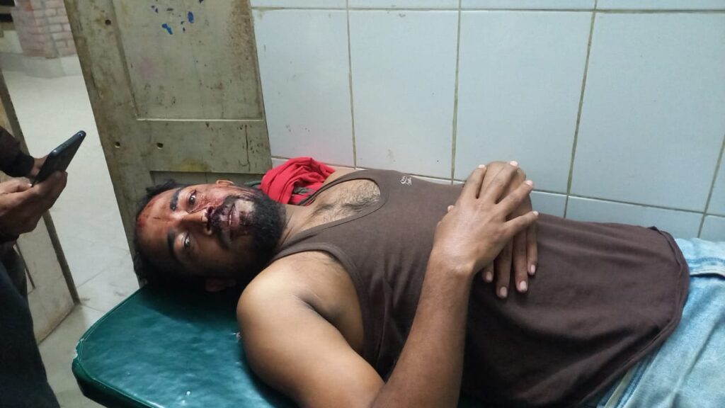 এসময় অতর্কিতভাবে কিসমত মাড়িয়া গ্রামের ছাদেরের ছেলে সাইদ,মাড়িয়া মৃধা পাড়া গ্রামের হাবলুর ছেলে আতিক,আদম আলীর ছেলে কুরবান আলী,মৃত লুতুর ছেলে জয়,মন্টুর ছেলে নাছিম আলী,আব্দুস ছালামের ছেলে জামিল উদ্দিন সহ ১০ থেকে ১২ জন সাংবাদিকের উপর হামলা চালিয়ে মাথায় বাশ দিয়ে আঘাত করলে সে রক্তাক্ত অবস্থায় মাটিতে পড়ে গেলে তাকে উদ্ধার করে হাসপাতালে ভর্তি করা হয়।