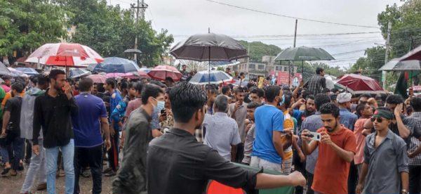 ঠাকুরগাঁওয়ের রাণীশংকৈলে আজ দুপুরে বিক্ষোভ মিছিল ও সড়ক অবরোধ করে উপজেলার সাধারণ শিক্ষার্থীরা। সম্প্রতি ঘটে যাওয়া কোটা সংস্কার আন্দোলনকারী শিক্ষার্থীদের উপর হত্যা, নিপীড়ন ও গণগ্রেফতারের প্রতিবাদে উপজেলা পরিষদের সামনে মূল সড়কে বিভিন্ন স্কুল-কলেজের প্রায় তিন শতাধিক শিক্ষার্থী জড়ো হয়ে কিছুক্ষণ সড়ক অবরোধ করে রাখে। এ সময় উপজেলা প্রশাসন ও থানা পুলিশ তাদের বুঝিয়ে পরিস্থিতি নিয়ন্ত্রণে আনেন। পরে তারা বিক্ষোভ মিছিলটি নিয়ে পৌর শহরের শিবদিঘি মডেল মসজিদের সামনে গিয়ে সরকার বিরোধী বিভিন্ন শ্লোগান দেয়। এ সময় তাদের মাথায় লাল কাপড়ের ফিতা ও হাতে বিভিন্ন ব্যানার,ফেস্টুন ও পোস্টার দেখা যায় । এরপর মিছিলটি রাণীশংকৈল বন্দর শান্তা ডেকেরেটর পর্যন্ত এসে আবার শিবদিঘি তিন রাস্তার মৌড়ে গিয়ে সমবেত হয়। সেখানে শিক্ষার্থীরা পোষ্টার হাতে বিভিন্ন শ্লোগানে শ্লোগানে শিক্ষার্থীদের ওপর হামলার অভিযোগ তোলেন বিক্ষোভকারিরা। এখানে তাঁদের কয়েকজন শিক্ষার্থী বক্তব্যে বলেন, শিক্ষার্থীদের উপর নির্বিচারে গুলিবর্ষণ, হামলা-মামলা ও হয়রানির বিপক্ষে তীব্র প্রতিবাদ জানাই। এই সাথে তাঁরা শিক্ষার্থীর উপর আর কোন হামলা মামলা ও হয়রানি না করা হয় তাঁর দাবি জানায এবং নিহত ছাত্রদের হত্যার সুষ্ঠু তদন্ত ও বিচারের দাবি জানায়। সেখান থেকে সন্ধ্যায় কোটা আন্দোলনকারি শহীদদের স্মরণে পৌর শহরের কেন্দ্রীয় শহীদ মিনারে মোমবাতি প্রজ্জ্বলনের ঘোষণা দিয়ে বিক্ষোভ মিছিলটি শেষ হয়। এ সময় উপজেলা প্রশাসন ও পুলিশ বাহিনীর সদস্যদেরকে অপ্রীতিকর ঘটনা এড়াতে সতর্ক অবস্থানে থাকতে দেখা গেছে।