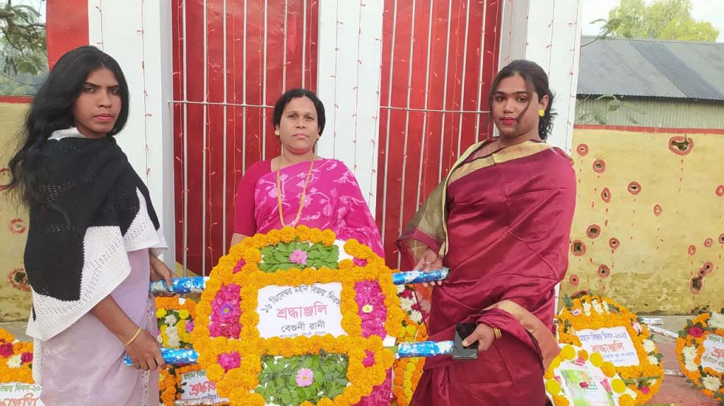 রৌমারীতে তৃতীয় লিঙ্গের মানুষদের বিজয় দিবসে শহীদ মিনারে পুষ্পমাল্য অর্পণ