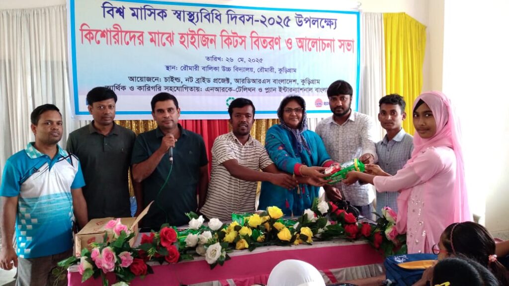 হাসান আলী (সবুজ):  সোমবার আরডিআরএস বাংলাদেশ এবং চাইল্ড, নট ব্রাইড প্রকল্পের আয়োজনে রৌমারী বালিকা উচ্চ বিদ্যালয়ে বিশ্ব মাসিক স্বাস্থ্যবিধি দিবস উপলক্ষে আয়োজিত অনুষ্ঠানে কিশোরীদের মাসিক স্বাস্থ্যবিধি সচেতনতা বৃদ্ধির লক্ষে বিভিন্ন দিক নির্দেশনামূলক আলোচনা করা হয়।অনুষ্ঠানে কিশোরীদের মাসিক কালীন পরিচর্যা নিয়ে বিস্তারিত কথা বলেন উপজেলা পরিবার পরিকল্পনা কর্মকর্তা মেহেদী হাসান।