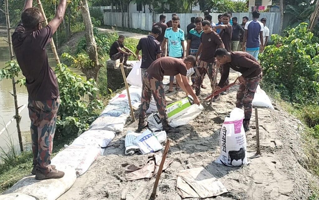 জিন্নাত আরা জেমিন:কুড়িগ্রামের রৌমারী উপজেলার বিজিবি মোড় থেকে ইজামারী ক্যাম্পের দূরত্ব ১ কিলোমিটার। এ কাঁচা সড়কটি উপজেলার রৌমারী সদর ইউনিয়নের ইজলামারী-ভারত সীমান্ত ঘেসা। রাস্তার বিভিন্ন জায়গায় খানাখন্দ, সামান্য বৃষ্টি হলেই জমে থাকে পানি। সংস্কারের অভাবে উপজেলার চার গ্রামের প্রায় প্রায় ১০ হাজার মানুষ বৃদ্ধ রোগী, স্কুল কলেজ পড়ুয়া শিক্ষার্থী ও টহলরত বিজিবি সদস্যরা দুর্ভোগের শিকার হতেন। সড়কটি সংস্কারের জন্য বিভিন্ন দপ্তরসহ স্থানীয় জন প্রতিনিধিদের কাছে ধরনা দিয়েও কোন সুফল মেলেনি এলাকাবাসির। অবশেষে বুধবার(২৮ আগস্ট) স্বেচ্ছাশ্রমে রাস্তাটি সংস্কার করেছে বিজিবি ও ছাত্র-জনতা।