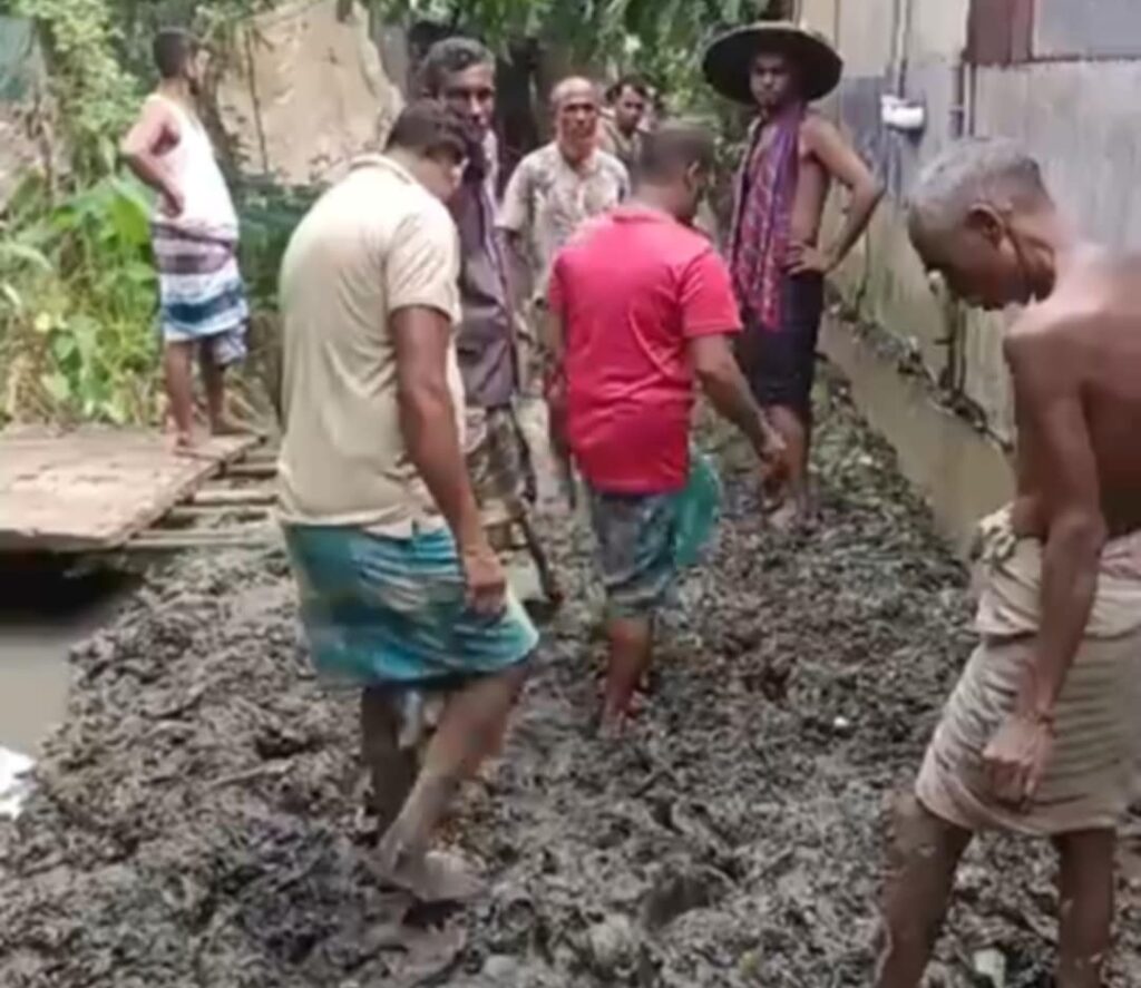লাখাইয়ে ভাদিকারা ৯নং ওয়ার্ডের রাস্তার বেহাল অবস্থা যেন দেখার কেউ নেই