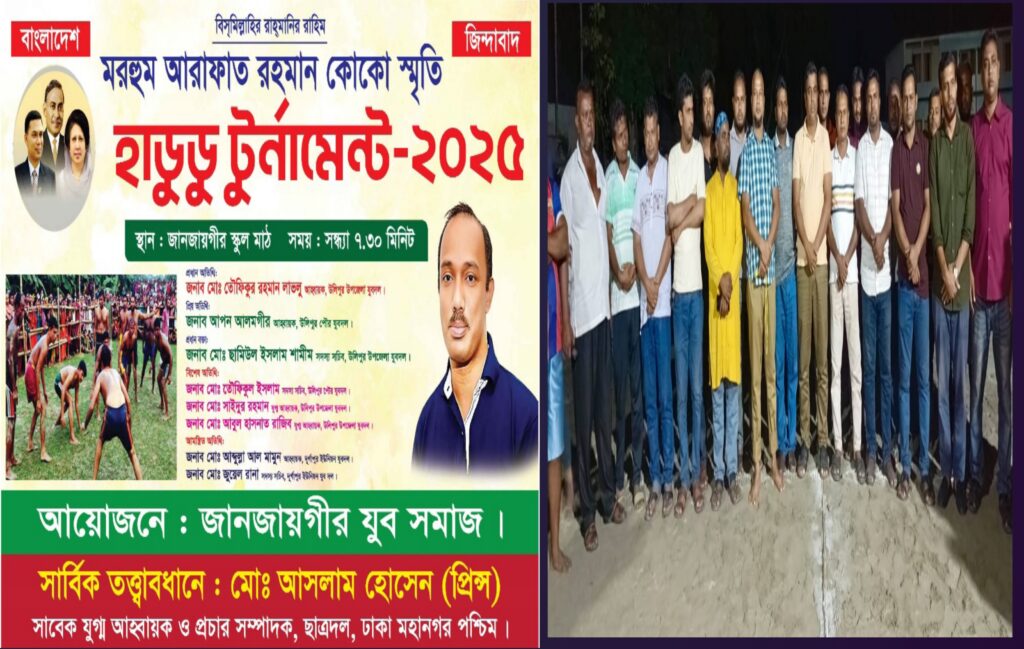 গতকাল  রাত ৯.৩০ ঘটিকায়  জানজায়গীর স্কুল মাঠে সাবেক যুগ্ম আহবায়ক ও প্রচার সম্পাদক, ছাত্রদল ঢাকা মহানগর মোঃ আসলাম হোসেন প্রিন্স, এর সার্বিক তত্ত্বাবধানে মরহুম আরাফাত রহমান কোকো স্মৃতি হাডুডু ২০২৫ এর প্রথম রাউন্ড এর তৃতীয়  খেলা অনুষ্ঠিত হয়েছে।