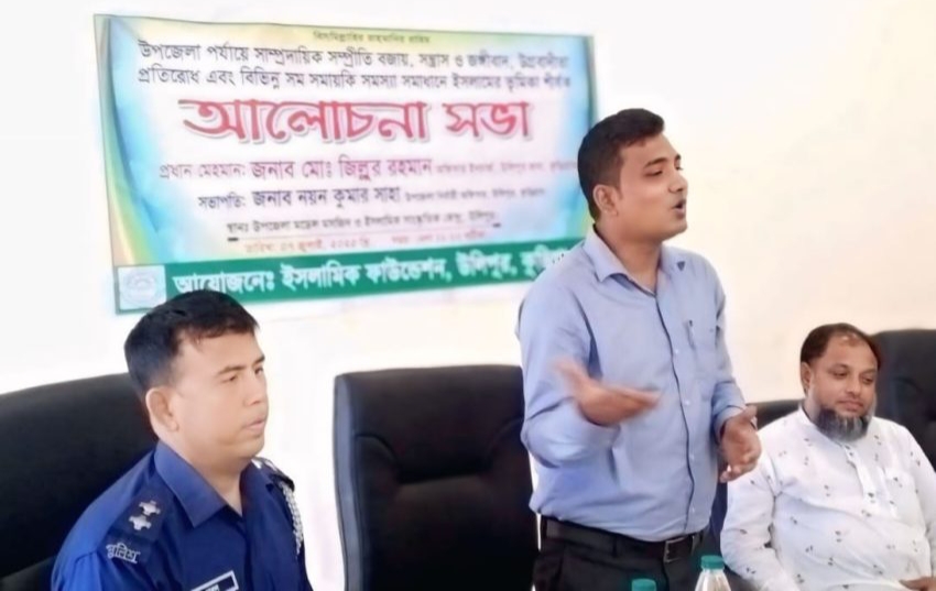 কুড়িগ্রামের উলিপুরেসা ম্প্রদায়িক সম্প্রীতি রক্ষা, সন্ত্রাস-জঙ্গিবাদ ও উগ্রবাদ প্রতিরোধ এবং সমসাময়িক সামাজিক সমস্যা সমাধানে ইসলামের ভূমিকা বিষয়ক এক গুরুত্বপূর্ণ আলোচনা সভা অনুষ্ঠিত হয়েছে।