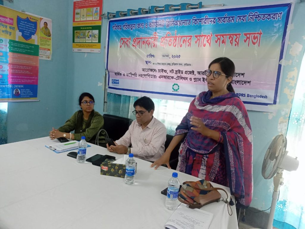 প্ল্যান ইন্টারন্যাশনাল বাংলাদেশ এর আর্থিক ও কারিগরি সহযোগিতায়, আরডিআরএস বাংলাদেশ এর চাইল্ড, নট ব্রাইড প্রকল্পের উদ্যোগে কুড়িগ্রাম সদর উপজেলার মা ও শিশু কল্যাণ কেন্দ্রে পরিবার পরিকল্পনা কল্যাণ ও কমিউনিটি ক্লিনিকগুলোতে কিশোরীদের সর্বোত্তম সেবা নিশ্চিতকরণে সেবা প্রদানকারী প্রতিষ্ঠানের সাথে সমন্বয় সভা অনুষ্ঠিত হয়।এতে উপস্থিত ছিলেন পরিবার পরিকল্পনা অধিদপ্তর কুড়িগ্রাম উপ-পরিচালক মোজাম্মেল হক,মা ও শিশু কল্যাণ কুড়িগ্রাম কেন্দ্রের ডা: কনিকা দাস, চাইল্ড,নট ব্রাইড প্রকল্পের টেকনিক্যাল অফিসার(SRHR) ফারজানা ফৌজিয়া,ফিল্ড ফ্যাসিলিটেটর রোশনা আক্তার, হাসান আলীসহ আরো অনেকেই। সমন্বয় সভায় উপ-পরিচালক মহোদয় উপস্থিত এফডব্লিউ-ভি,এফডব্লিউ-এ কর্মীদের বাড়ি পরিদর্শন করে কিশোরদের তালিকা তৈরি করে তাদের স্যানিটারি নেপকিনের ব্যবহার,কিশোরীদের নিয়ে সেশন করে ফলিক এসিড,আয়রন টেবলেট দিতে পরামর্শ প্রদান করেন। ডাঃকনিকা দাস বলেন,মাঠ পর্যায়ে সকলকে বাল্যবিবাহের কুফল সম্পর্কে জানাতে হবে,১৮ বছরের আগে বিয়ে নয় এসব বিষয়ে নব দম্পতিদের নিয়ে যৌন প্রজনন স্বাস্থ্য ও অধিকার বিষয়ে সচেতন করতে হবে।