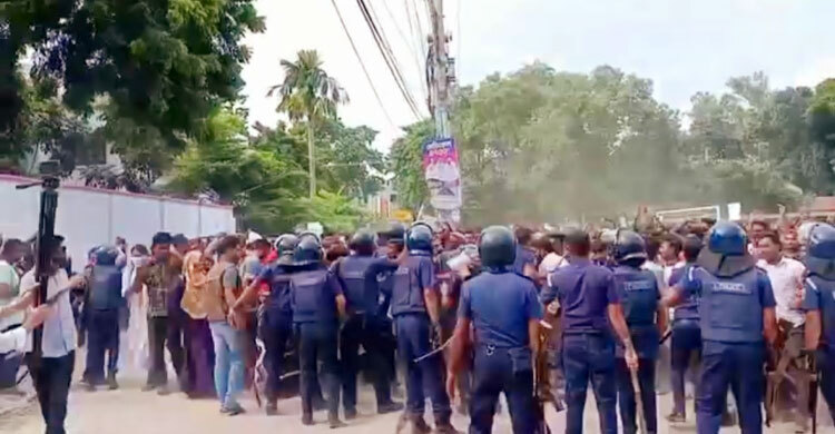 এদিকে শিক্ষার্থীদের ওপর হামলার সংবাদ ছড়িয়ে পড়লে পুরো শহরের বিভিন্ন স্থানে শিক্ষার্থীদের সঙ্গে পুলিশের বিচ্ছিন্ন ধাওয়া-পাল্টাধাওয়া হয়। পরে শহরের রেলগেট, মুক্তিযোদ্ধা সংসদ গলি, স্টেডিয়াম রোড, হাসপাতাল মোড়, আল-মাহমুদ অ্যাভিনিউ, ইসলামিয়া সরকারি কলেজ ও আশপাশে দফায় দফায় সংঘর্ষ হয়। এসময় রাবার বুলেট ও টিয়ারগ্যাস নিক্ষেপ করে পরিস্থিতি নিয়ন্ত্রণের চেষ্টা করে পুলিশ।